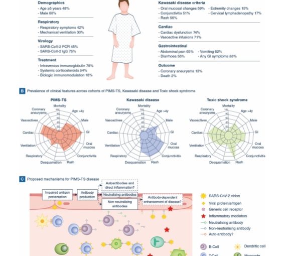 V pediatrii se objevilo nové závažné onemocnění – syndrom multisystémové zánětlivé odpovědi spojené s covid-19 u dětí (PIMS-TS). Projeví se několik týdnů po expozici koronaviru SARS-CoV-2. Podstatou nemoci je opožděná aberantní imunitní odpověď u disponovaných dětí, která vede k rozvoji vaskulitidy a postihne především myokard, ale může se rozvinout do multiorgánového selhání. V České republice byl větší výskyt PIMS-TS zaznamenán od poloviny listopadu, v návaznosti na vrchol druhé vlny epidemie. Další nové případy zaznamenáváme na prahu roku 2021, které již souvisejí s tzv. „třetí vlnou“ covid-19.
