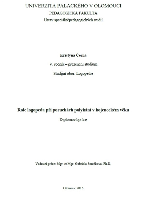 V roce 2016 obhájila Kristýna Černá, maminka Niny s Williamsovým syndromem, na pedagogické fakultě Univerzity Palackého v Olomouci diplomovou práci na téma Role logopeda při poruchách polykání v kojeneckém věku, kterou s jejím laskavým svolením zveřejňujeme. Text najdete zde.