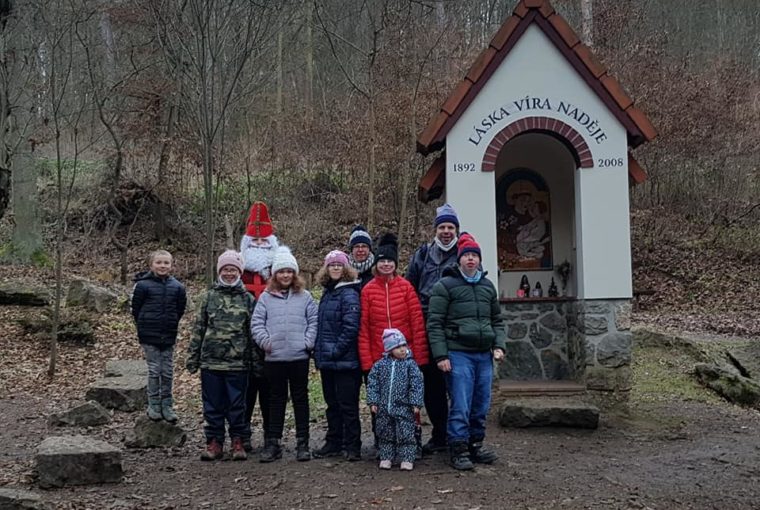 Letošní mikulášská besidka se s ohledem na protiepidemická opatření odehrála netradičně v plenéru – na poutním místě U třech habrů, u studánky nedaleko Vysokého Újezda. Dorazilo celkem 7 rodin a bylo to moc fajn. Povídalo se, pekly se buřty na ohni, ochutnávalo se cukroví. Snad nám příští rok umožní více podobných setkání.