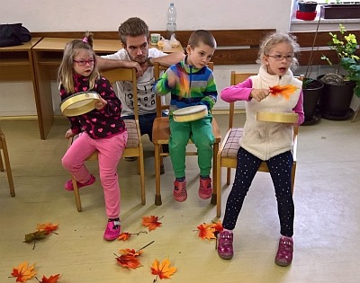 Program jsme vymysleli pestrý. Pro děti měla krásně připravená pásma na téma podzim muzikoterapeutka Dana Pšeničková a cvičitelka Maruška Magdoňová naplánovala cvičení vevnitř, a pokud počasí dovolilo, tak i venku. Nechybělo rovněž pohádkové putování s vysvobozením princezny. Vzhledem k množství účastníků jsme děti rozdělili na dvě skupiny přibližně stejně velké. Obě skupiny se střídaly po jednom bloku vždy dopoledne a odpoledne.