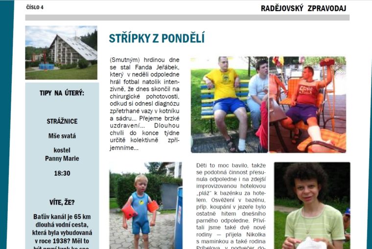 Na pobytu v moravském Radějově v roce 2011 jsme každý den vydávali tzv. Radějovský zpravodaj. Jednotlivá čísla najdete zde: