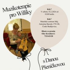 Muzikoterapie s Danou Pšeničkovou pro nejmenší Willíky v Českých Budějovicích! Kdy? V sobotu 14.2.2026 od 10 hodin Kde: mateřské centrum Máj, Antonína Barcala