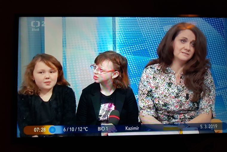 V Dobrém ránu České televize v úterý 5.3.2019 proběhlo několik vstupů o vzácných onemocněních – do Ostravy vyrazil vzdělávat národ o Williamsově syndromu František Hába se všemi dětmi a hlavně s Kačenkou. Doprovod jim dělala Anička Arellanesová z České asociace pro vzácná onemocnění. Děkujeme za pozvání a Fandovi s Kačenkou i za reprezentaci:-)